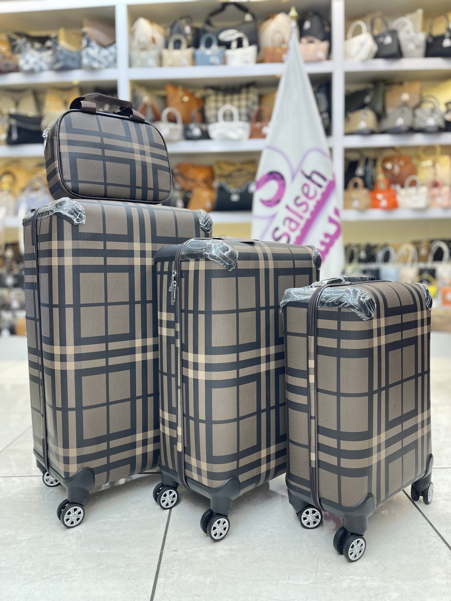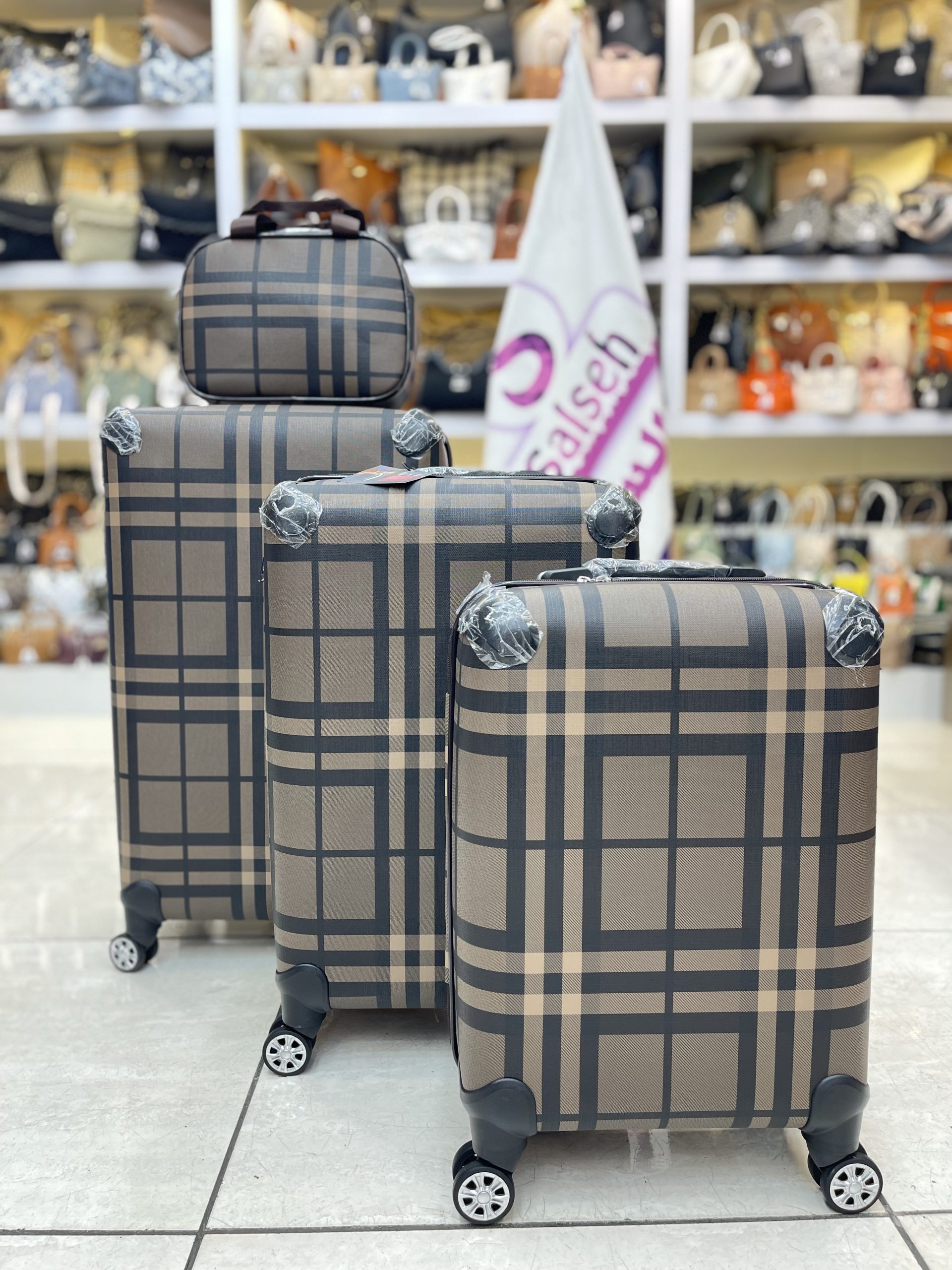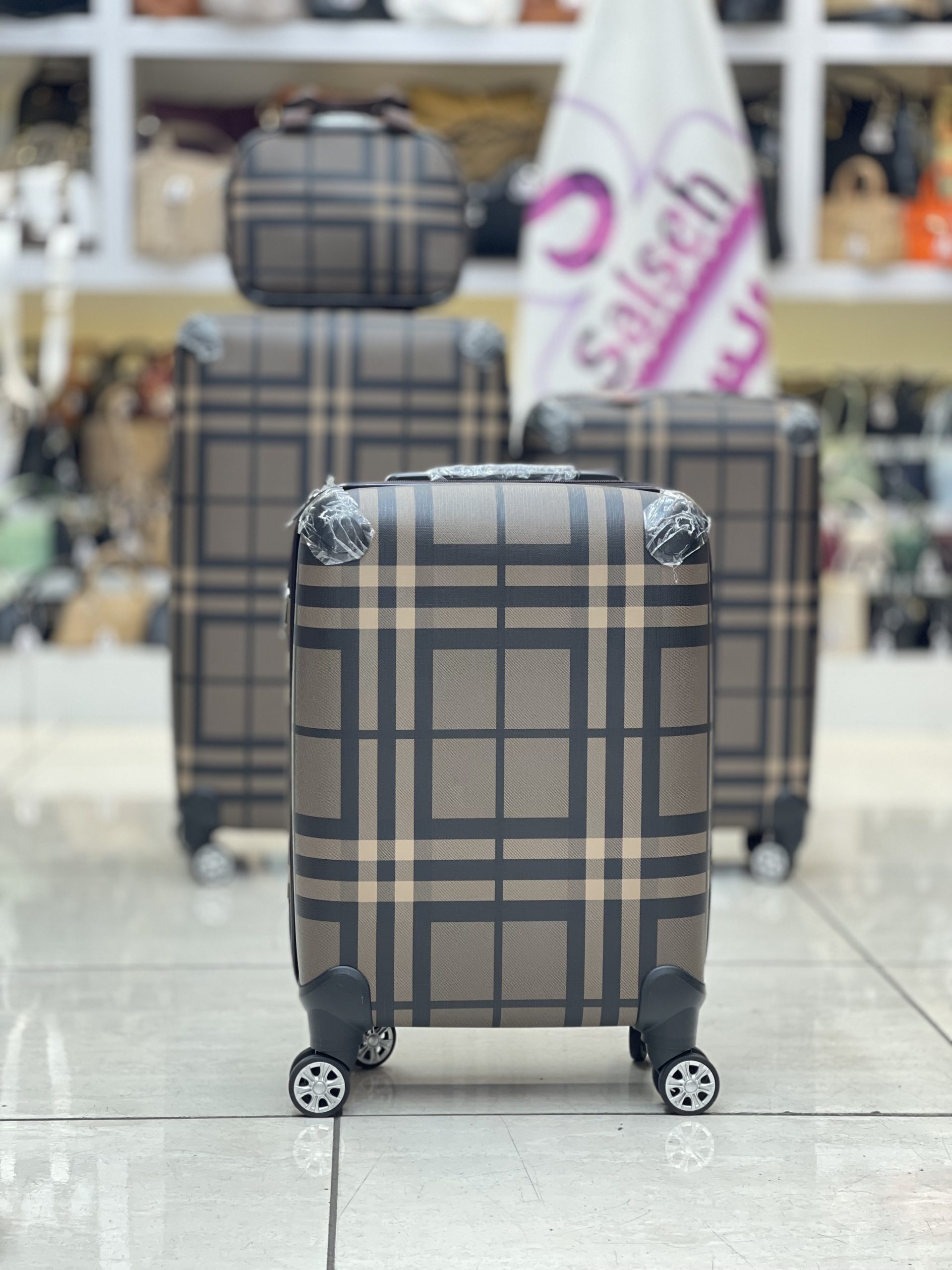 چمدان اورجینال لوکس باربری چهارخونه قهوه ای با 3 سایز از سایز 20 تا سایز 28 با بهترین کیفیت و سه سال گارانتی بی قید و شرط