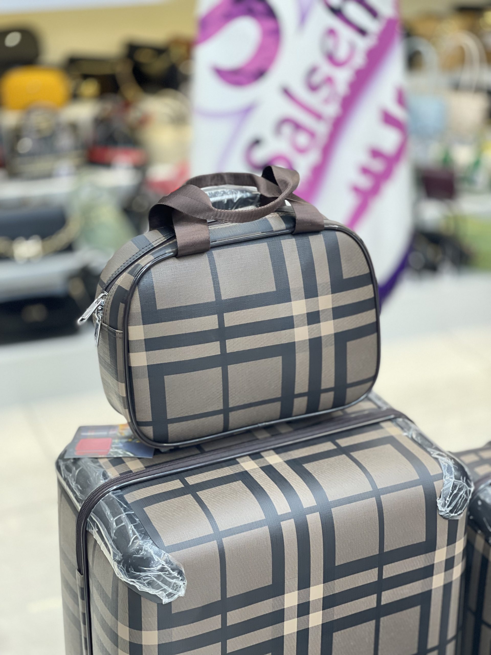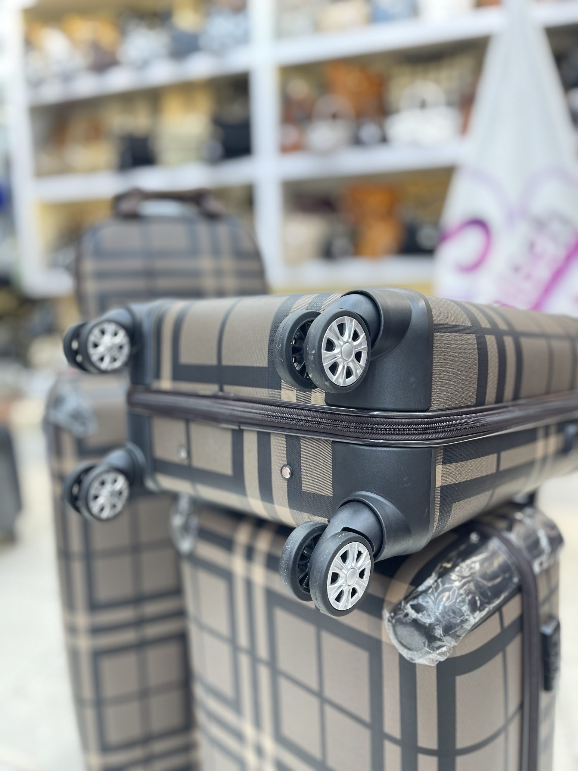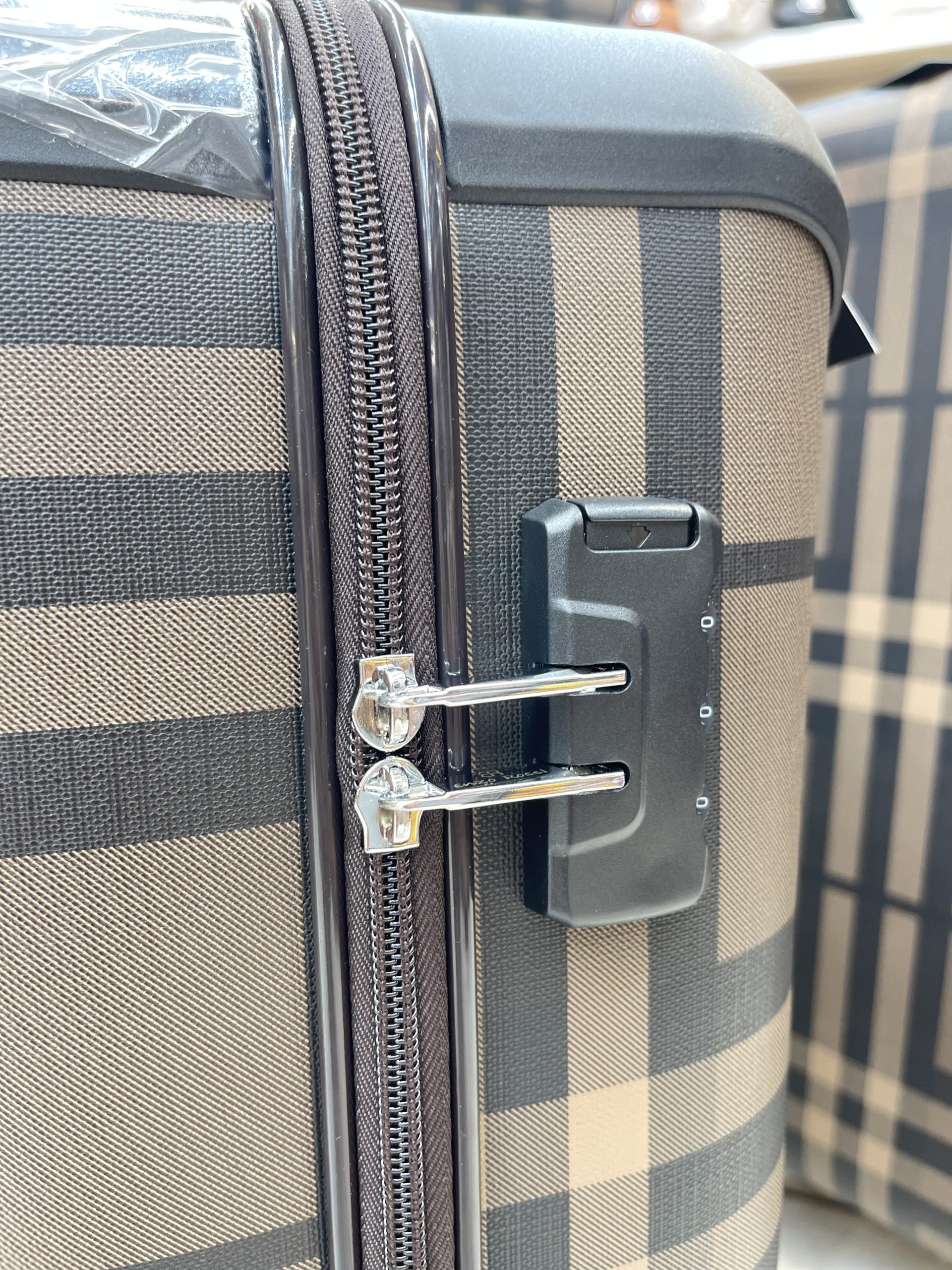 چمدان اورجینال لوکس باربری چهارخونه قهوه ای با 3 سایز از سایز 20 تا سایز 28 با بهترین کیفیت و سه سال گارانتی بی قید و شرط