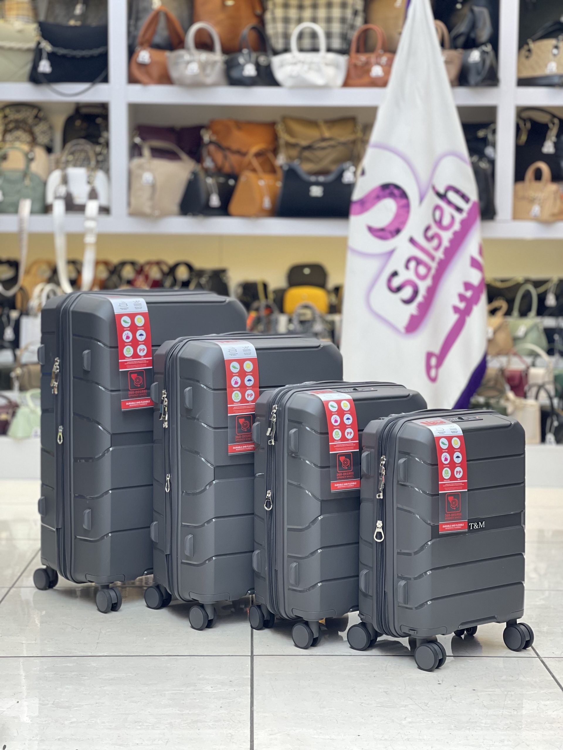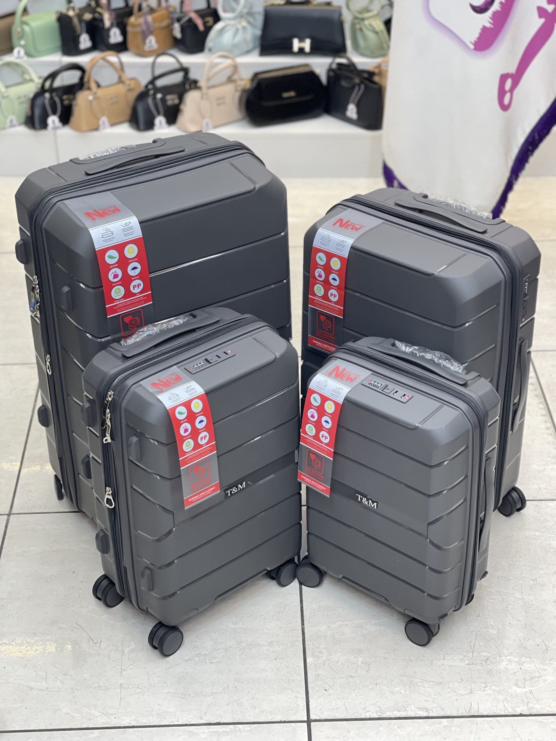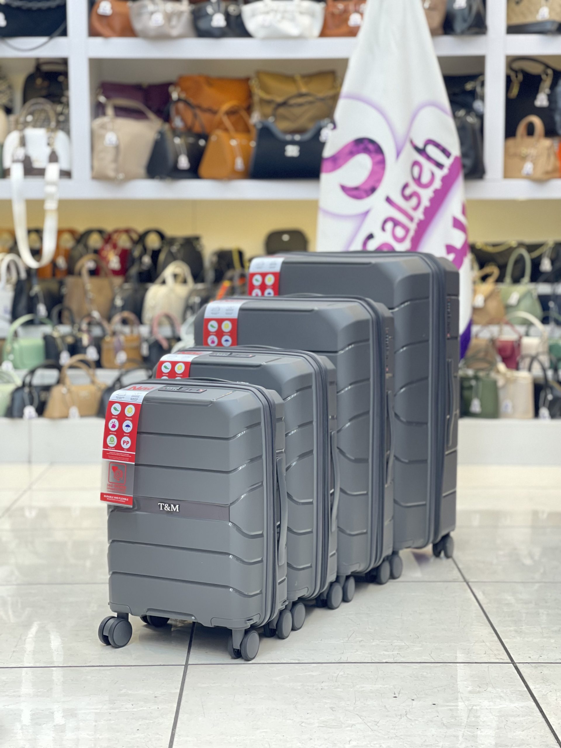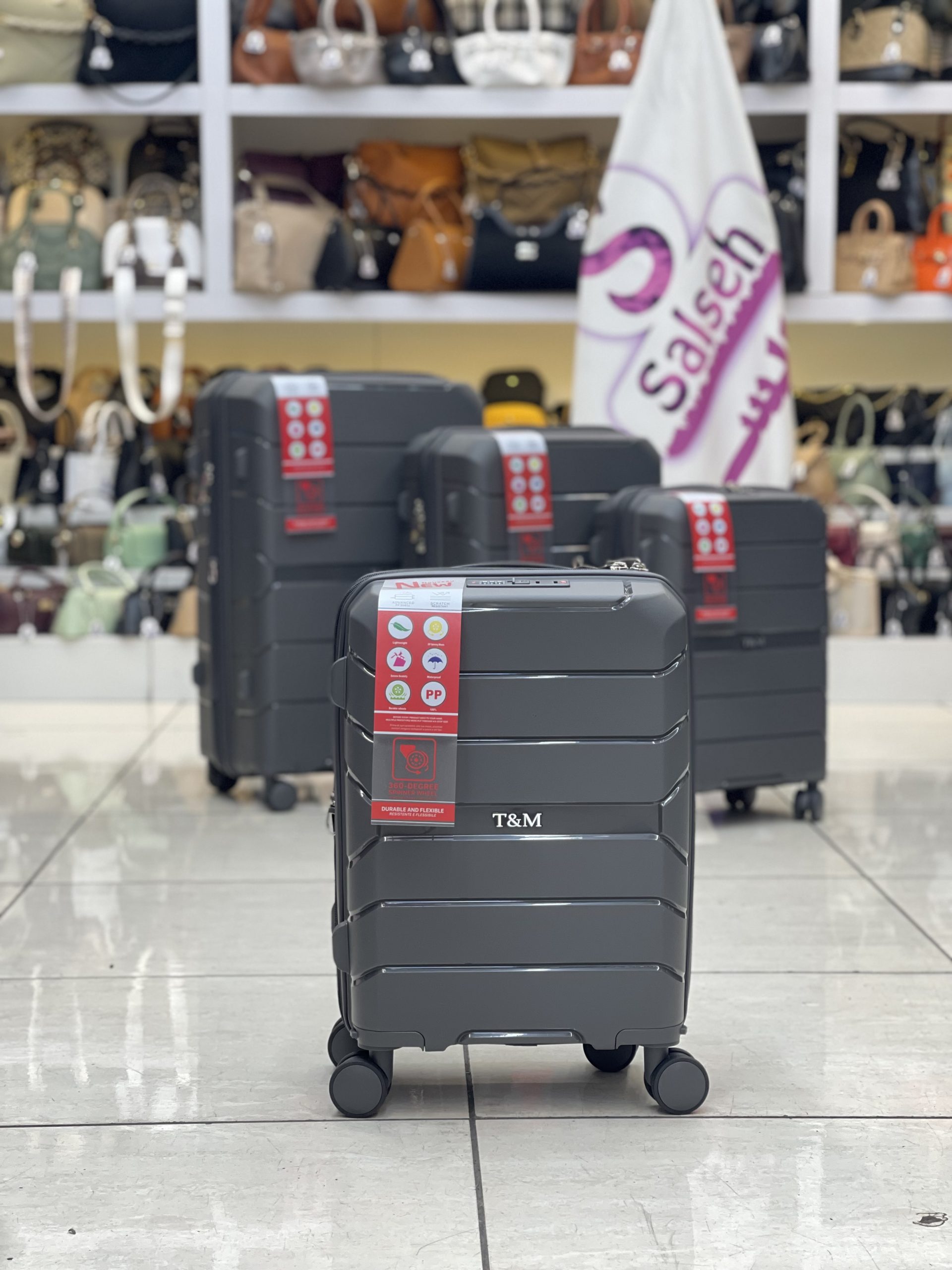 چمدان اورجینال نشکن برند تی ام با 4 سایز از سایز 18 تا سایز 28 با بهترین کیفیت و سه سال گارانتی بی قید و شرط